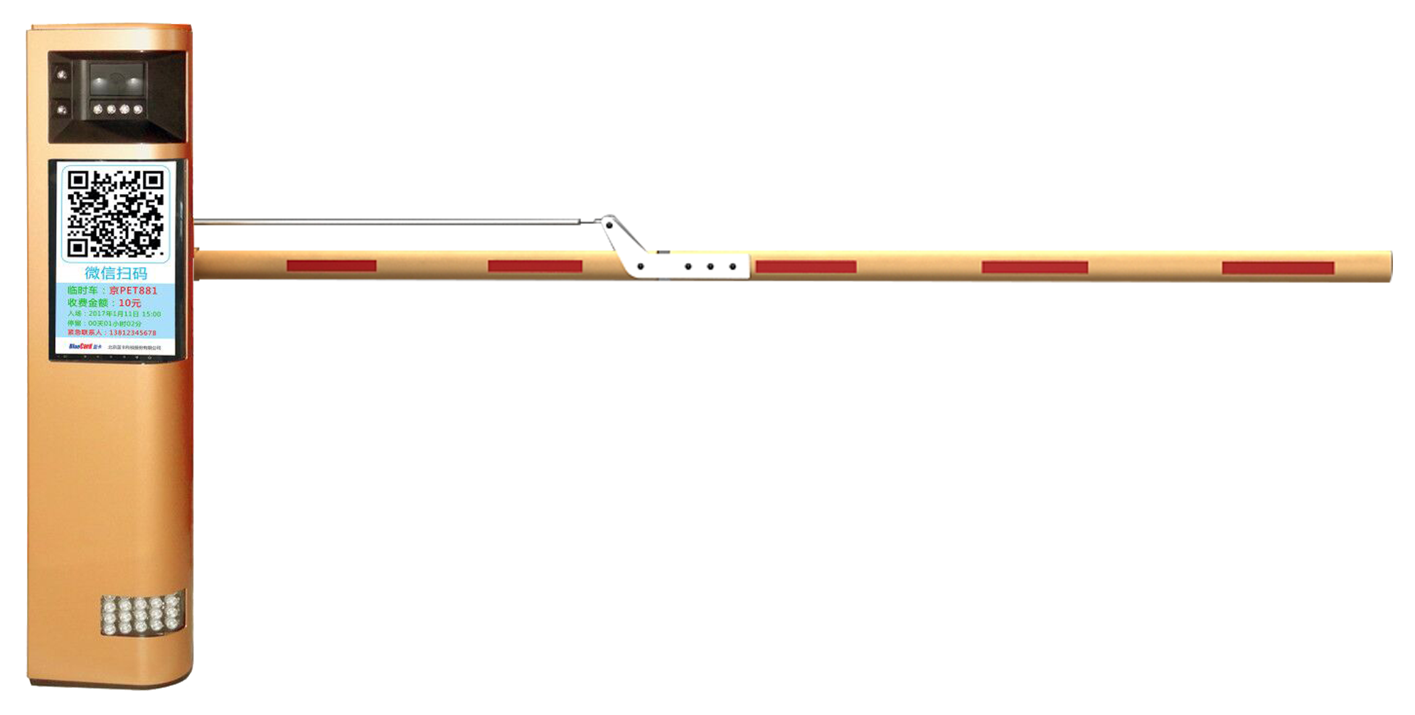 LCD广告屏:采用LCD显示屏,可播放视频广告和图片广告、车辆照片、识别结果、收费金额、二维码、限行提示、物业信息等;