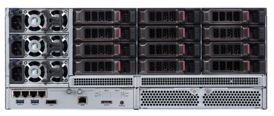 高性能多核处理器,保障了海量数据处理的稳定性; 采用模块化、抽拉式、无线缆设计,保障了系统易维护性; 支持SBB2.0国际标准架构,方便产品维护和升级; 4U精细化机箱,支持36块硬盘;支持Raid0、Raid1、Raid3、Raid4、Raid5、Raid6、Raid10、Raid50、Raid60、SRAID、JBOD; 支持全局热备和局部热备;支持逻辑卷的动态在线扩展; 支持SRAID功能,保证磁盘数据的安全性,确保数据的完整; 支持RAID误操作恢复功能,防止磁盘被误操作导致数据丢失,增加数据安全性; 支持对磁盘进行使用前预检和使用中巡检,提前预防,及时报警; 支持同个存储服务器和不同存储服务器间的磁盘漫游,保证磁盘中的数据不丢失; 自动识别磁盘的剩余空间容量,根据用户的数据存储需求,可划分多个容量不同的数据存储空间; 多项磁盘保护策略和RAID先进技术,保障数据的安全可靠; 当磁盘处于非工作状态下,进入休眠状态,进行读写操作时可被唤醒,增加磁盘寿命; 支持标准iSCSI协议存储及视频流直存功能,减少流媒体服务器的成本; 支持NAS服务,提供大容量快速存储的可能; 支持N+M集群,确保整个集群环境的稳定; 针对关键重要的视频,提供对实时流和历史视频进行加锁,确保不被循环覆盖; 支持图片直存,可配合电警卡口使用;支持智能风扇调速,支持智能CPU调频等功能,方便调节,提高工作效率; 支持SAS多级级联,保障了系统存储容量的易扩展性; 标配4个千兆以太网口,可扩展4个千兆以太网口或2个万兆接口; 提供基于WEB的配置管理功能,简单易用; 支持Onvif、GB28181等标准协议,保障了对不同厂家前端设备的兼容性; 针对监控领域进行软硬件优化,配套其他监控产品形成完整解决方案; 完全标准化设备,兼容各类软件平台。