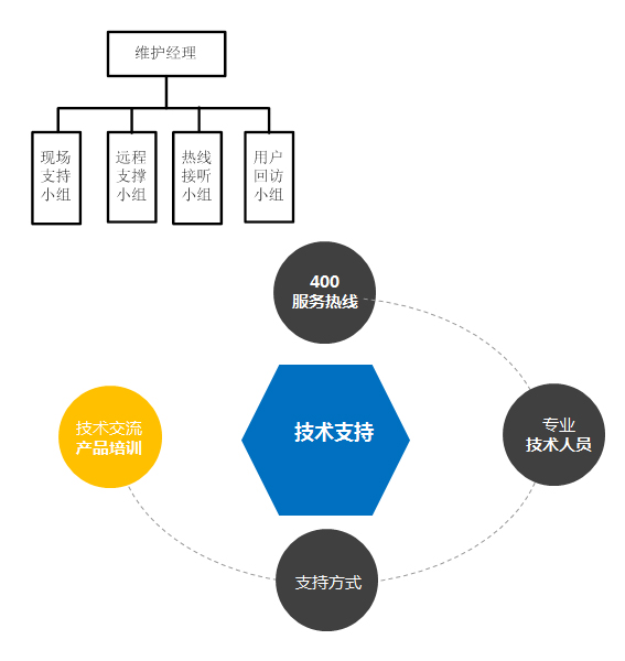 为保障本项目顺利实施完成,并在终验后系统、设备能持续正常运行,我公司为此要求网络设备主要提供商(ZKCOM公司)与我公司维护部门针对本项目分别组建了专业的售后服务团队,为用户提供技术支持及售后服务工作,并配合最终用户做好系统日常运维工作。